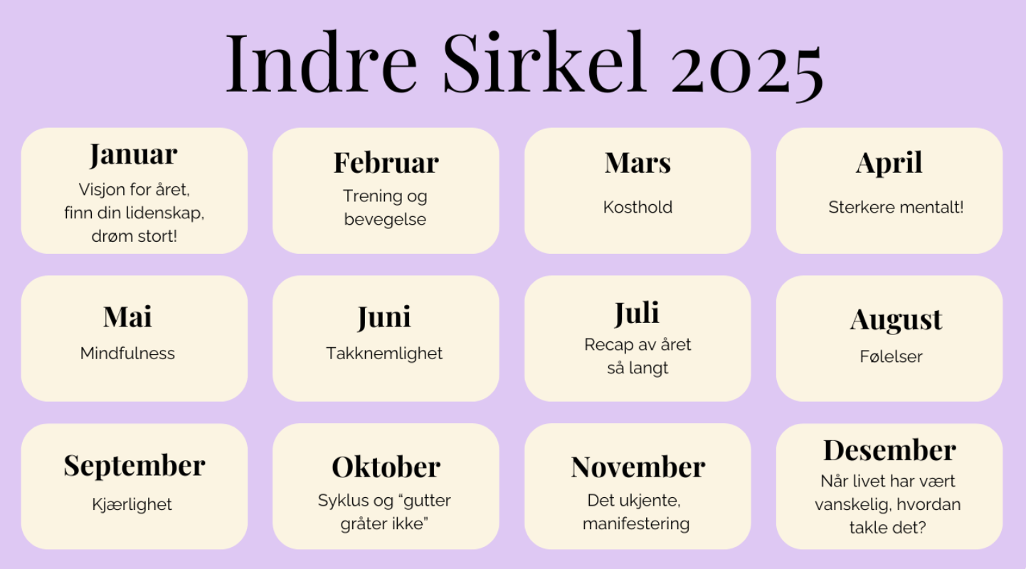 Indre Sirkel er din 12-måneders reise med inspirasjon, støtte og praktiske verktøy som faktisk fungerer.